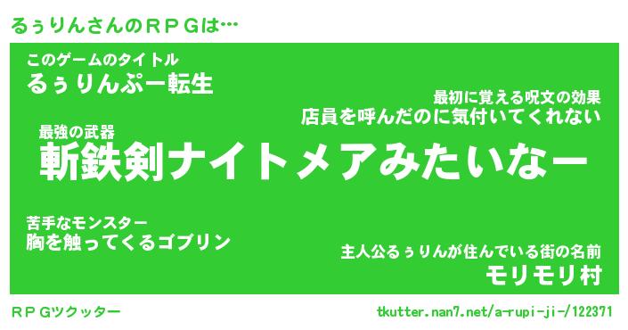 | 男性向けラノベタイトル風あだ名 | 『るぅりんの憂鬱』 |