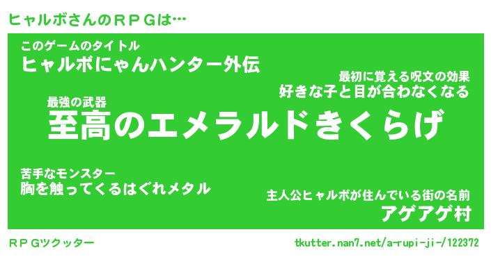 | 意味不明あだ名 | 『ペロリンヒャルボ』『永久保存ヒャルボ』 |