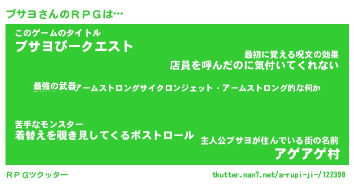 | ファンタジー風あだ名 | 『ブサフェル』『エターナルブサヨー』 |