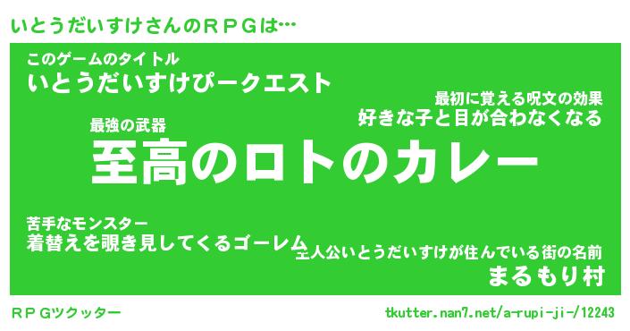 | 男性向けラノベタイトル風あだ名 | 『イトウダイスケアートオンライン』 |