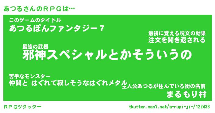 | ファンタジー風あだ名 | 『アツフェル』『エターナルアツルー』 |