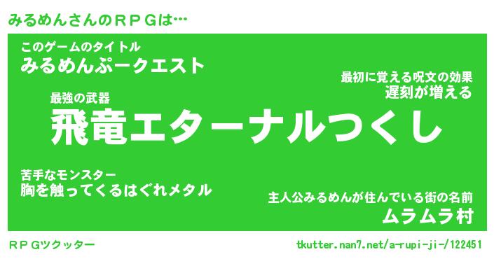 | 男性向けラノベタイトル風あだ名 | 『ミルメンアートオンライン』 |