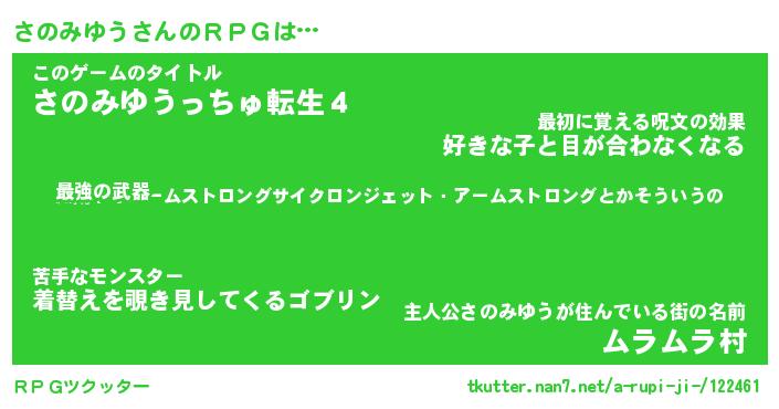 | 男性向けラノベタイトル風あだ名 | 『さのみゆうの憂鬱』 |