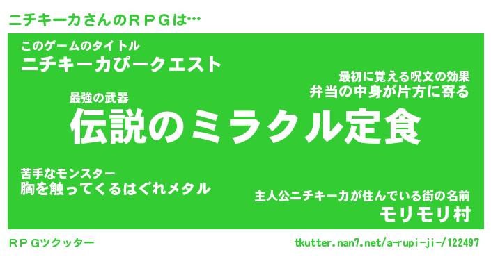 | 男性向けラノベタイトル風あだ名 | 『ニチキーカの憂鬱』 |
