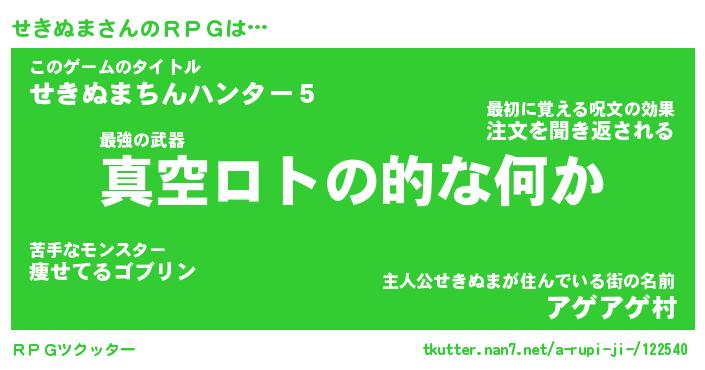 | 伝説のあだ名 | 『封印されし竜騎士せきぬま』 |