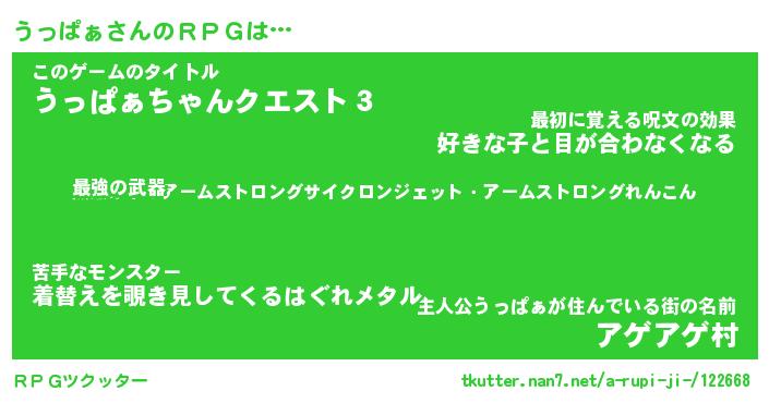 | 伝説のあだ名 | 『封印されし竜騎士うっぱぁ』 |