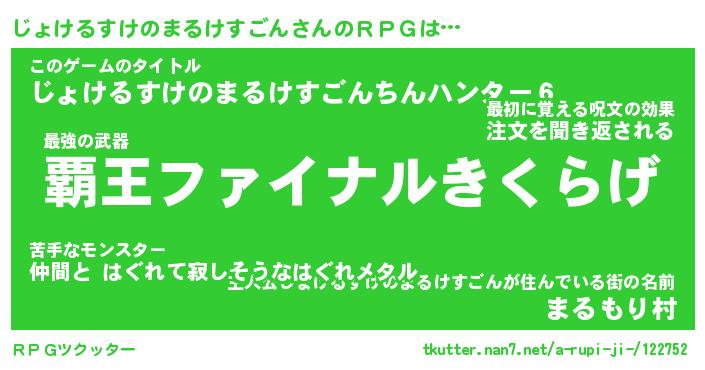 | 胡散臭い通販商品みたいなあだ名 | 『億万長者になれる水晶球…その名も「じょけるすけのまるけすごん」』 |