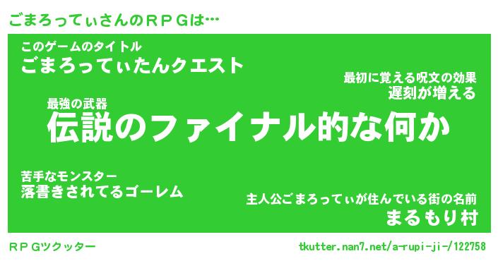 | 男性向けラノベタイトル風あだ名 | 『ごまろってぃの憂鬱』 |