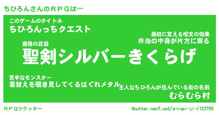 | ヒーロー風カッコイイあだ名 | 『スーパーチヒロン』『黄金騎士チヒ』 |