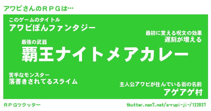 | ファンタジー風あだ名 | 『アワフェル』『エターナルアワビー』 |