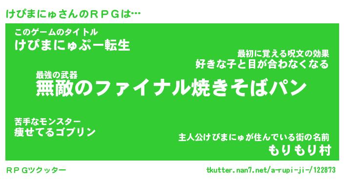 | ファンタジー風あだ名 | 『ケピフェル』『エターナルケピマニュー』 |