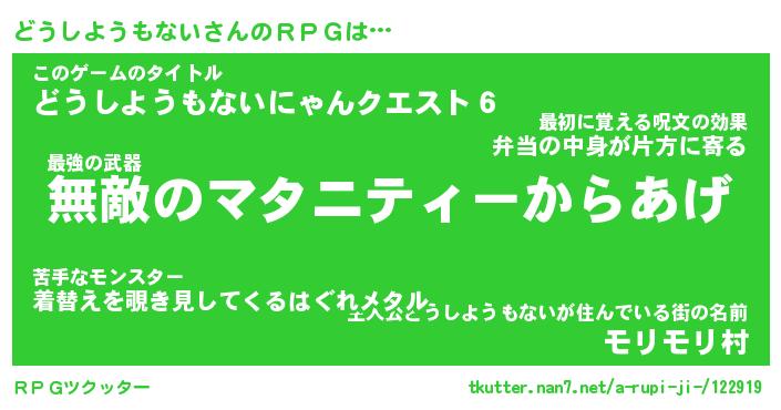 | ツイッター | どうしようもないさんのツイッターID『dendenmushi_nyan』 |
