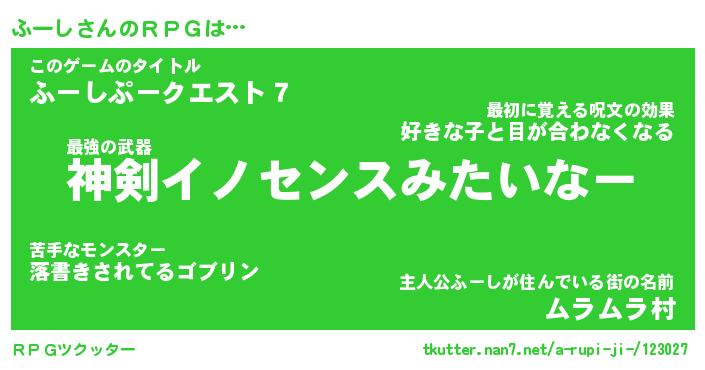 | 男性向けラノベタイトル風あだ名 | 『ふーしの憂鬱』 |