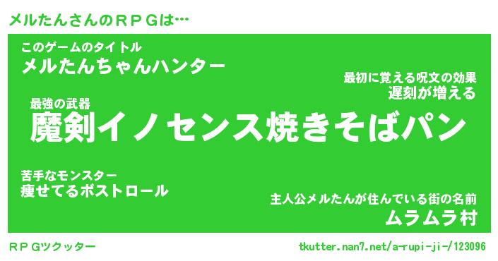 | 男性向けラノベタイトル風あだ名 | 『メルたんの憂鬱』 |