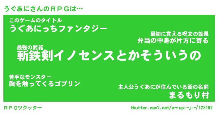 | 男性向けラノベタイトル風あだ名 | 『うぐあにの憂鬱』 |