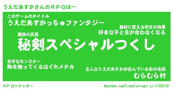 | ヒーロー風カッコイイあだ名 | 『スーパーウエダアスカ』『幻影騎士ウエ』 |