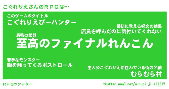 | ファンタジー風あだ名 | 『コグフェル』『エターナルコグレリエー』 |