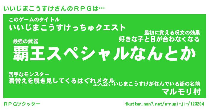 | 男性向けラノベタイトル風あだ名 | 『イイジマコウスケアートオンライン』 |