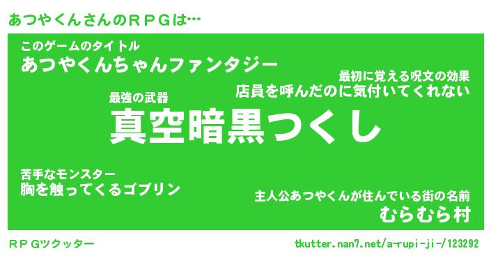 | 男性向けラノベタイトル風あだ名 | 『アツヤクンアートオンライン』 |