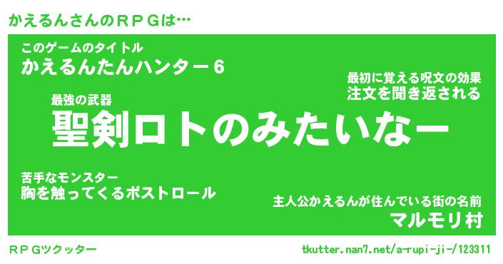 | 伝説のあだ名 | 『伝説の竜騎士かえるん』 |