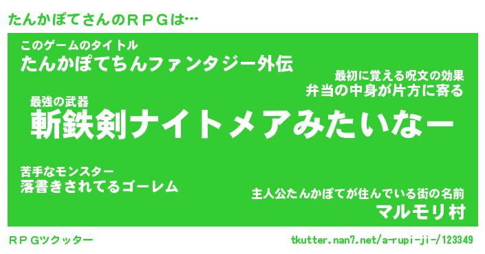 | ファンタジー風あだ名 | 『タンフェル』『エターナルタンカポテー』 |