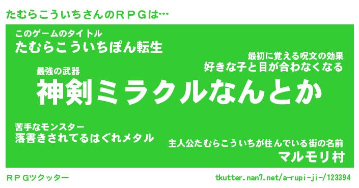 | 男性向けラノベタイトル風あだ名 | 『たむらこういちの憂鬱』 |