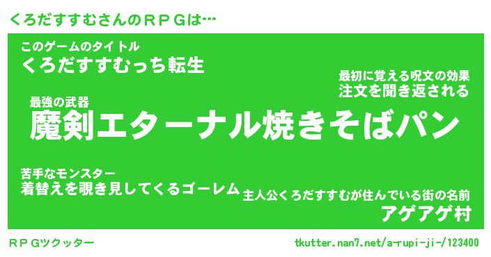 | 2回繰り返すあだ名 | 『くろくろ』『くくろろ』『ねばねば』 |