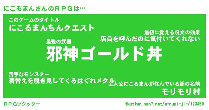 | 男性向けラノベタイトル風あだ名 | 『ニコルマンアートオンライン』 |