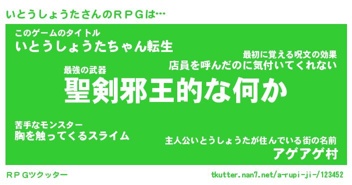 | 男性向けラノベタイトル風あだ名 | 『いとうしょうたの憂鬱』 |