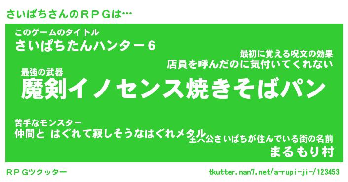 | 男性向けラノベタイトル風あだ名 | 『さいぱちの憂鬱』 |