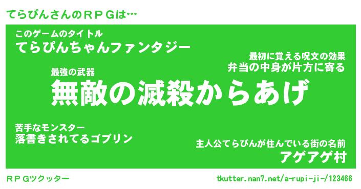 | ファンタジー風あだ名 | 『テラフェル』『エターナルテラピンー』 |