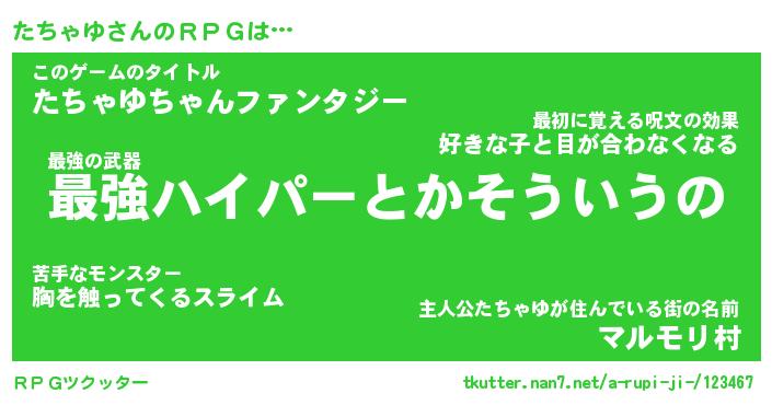 | 男性向けラノベタイトル風あだ名 | 『タチャユアートオンライン』 |