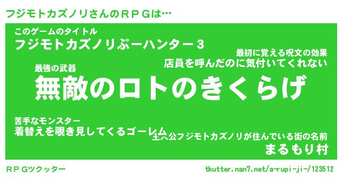 | 伝説のあだ名 | 『封印されし竜騎士フジモトカズノリ』 |