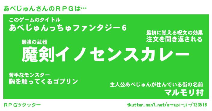 | 男性向けラノベタイトル風あだ名 | 『あべじゅんの憂鬱』 |