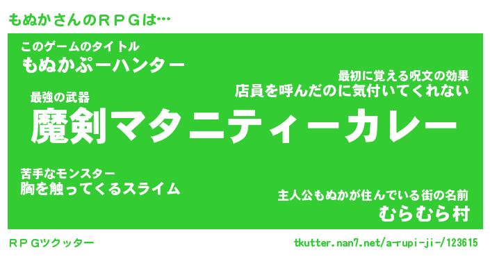 | 男性向けラノベタイトル風あだ名 | 『もぬかの憂鬱』 |