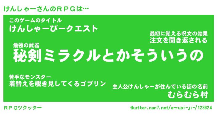 | 男性向けラノベタイトル風あだ名 | 『けんしゃーの憂鬱』 |