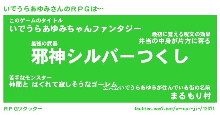 | 伝説のあだ名 | 『封印されし傭兵いでうらあゆみ』 |