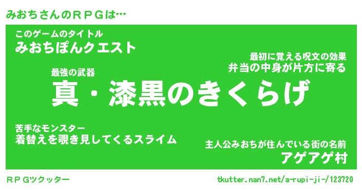 | 男性向けラノベタイトル風あだ名 | 『ミオチアートオンライン』 |