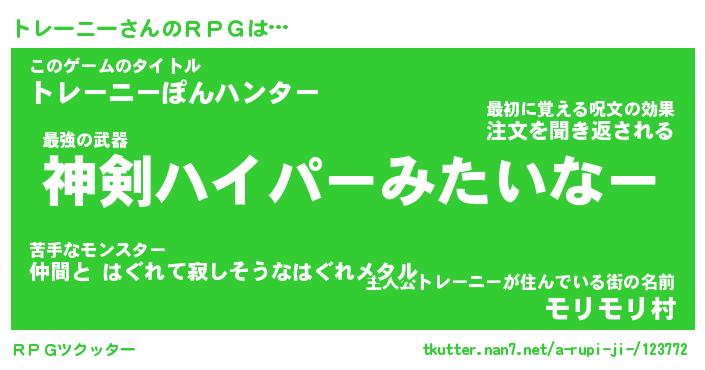| ファンタジー風あだ名 | 『トレフェル』『エターナルトレーニーー』 |