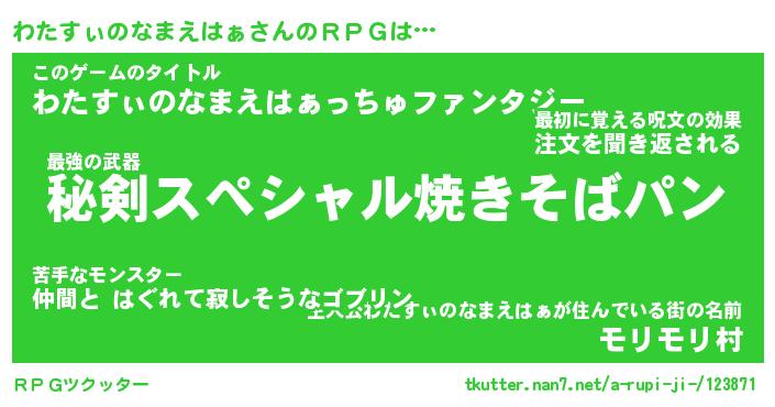 | 意味不明あだ名 | 『ペロリンわたすぃのなまえはぁ』 |