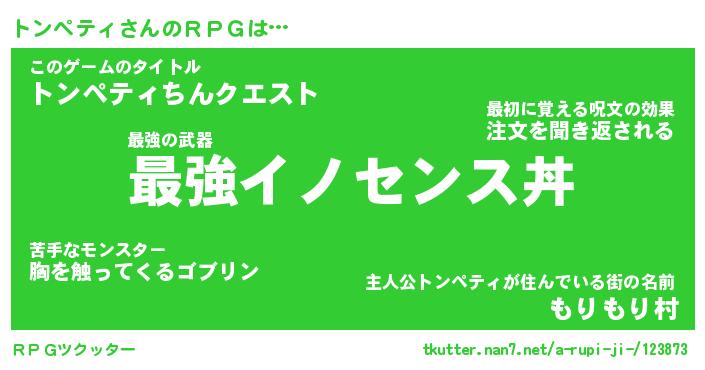| 男性向けラノベタイトル風あだ名 | 『トンペティアートオンライン』 |