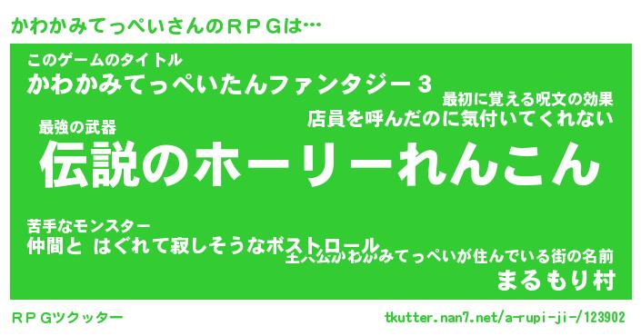 | ポケモン風あだ名 | 『カワチュウ』『カワカダネ』 |
