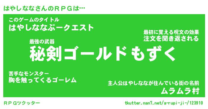 | 胡散臭い通販商品みたいなあだ名 | 『必ず成功する霊験あらたかなお札…その名も「はやしなな」』 |