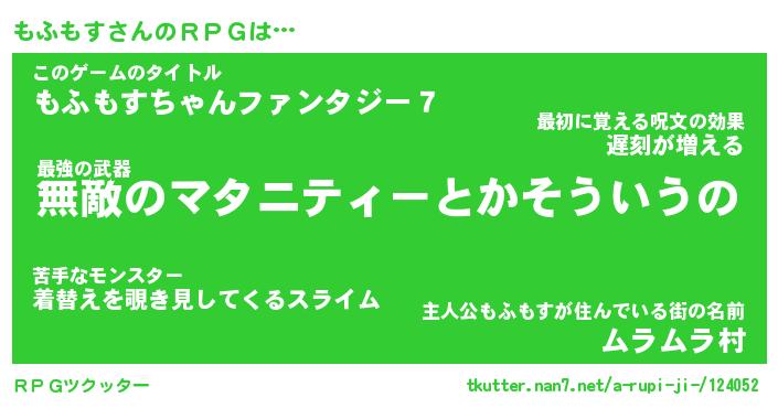 | ファンタジー風あだ名 | 『モフフェル』『エターナルモフモスー』 |