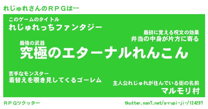 | 男性向けラノベタイトル風あだ名 | 『れじゅれの憂鬱』 |