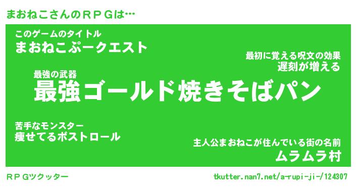 | 2回繰り返すあだ名 | 『まおまお』『ままおお』『ぐねぐね』 |