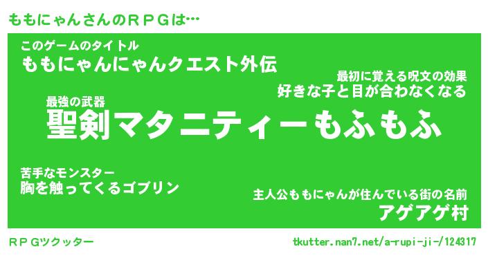 | 胡散臭い通販商品みたいなあだ名 | 『必ず成功する霊験あらたかなお札…その名も「ももにゃん」』 |