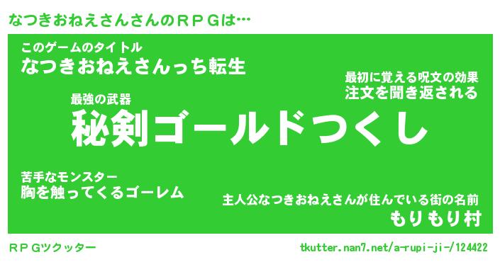 | 伝説のあだ名 | 『伝説のスナイパーなつきおねえさん』 |