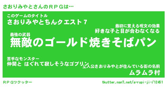 | ヒーロー風カッコイイあだ名 | 『スーパーサオリミヤト』『幻影騎士サオ』 |