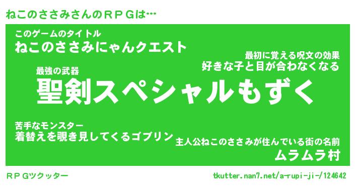 | 伝説のあだ名 | 『伝説の竜騎士ねこのささみ』 |